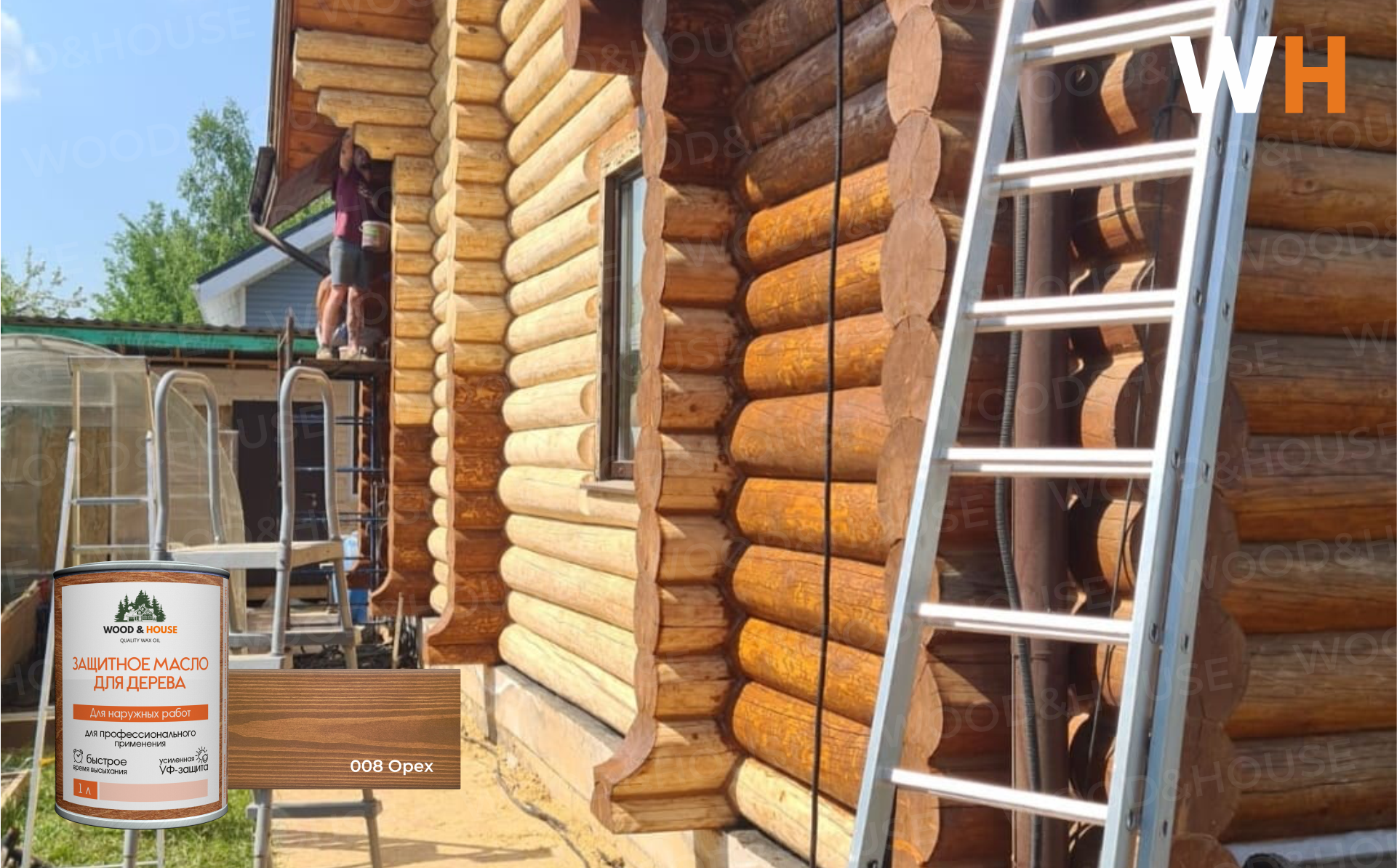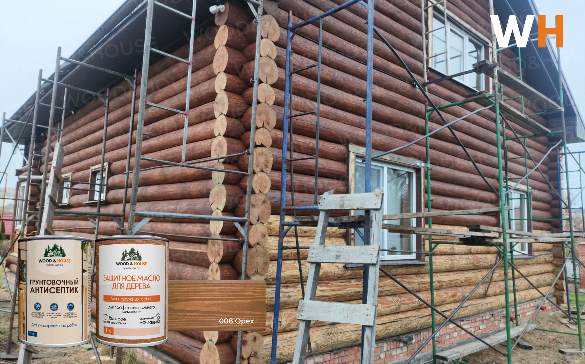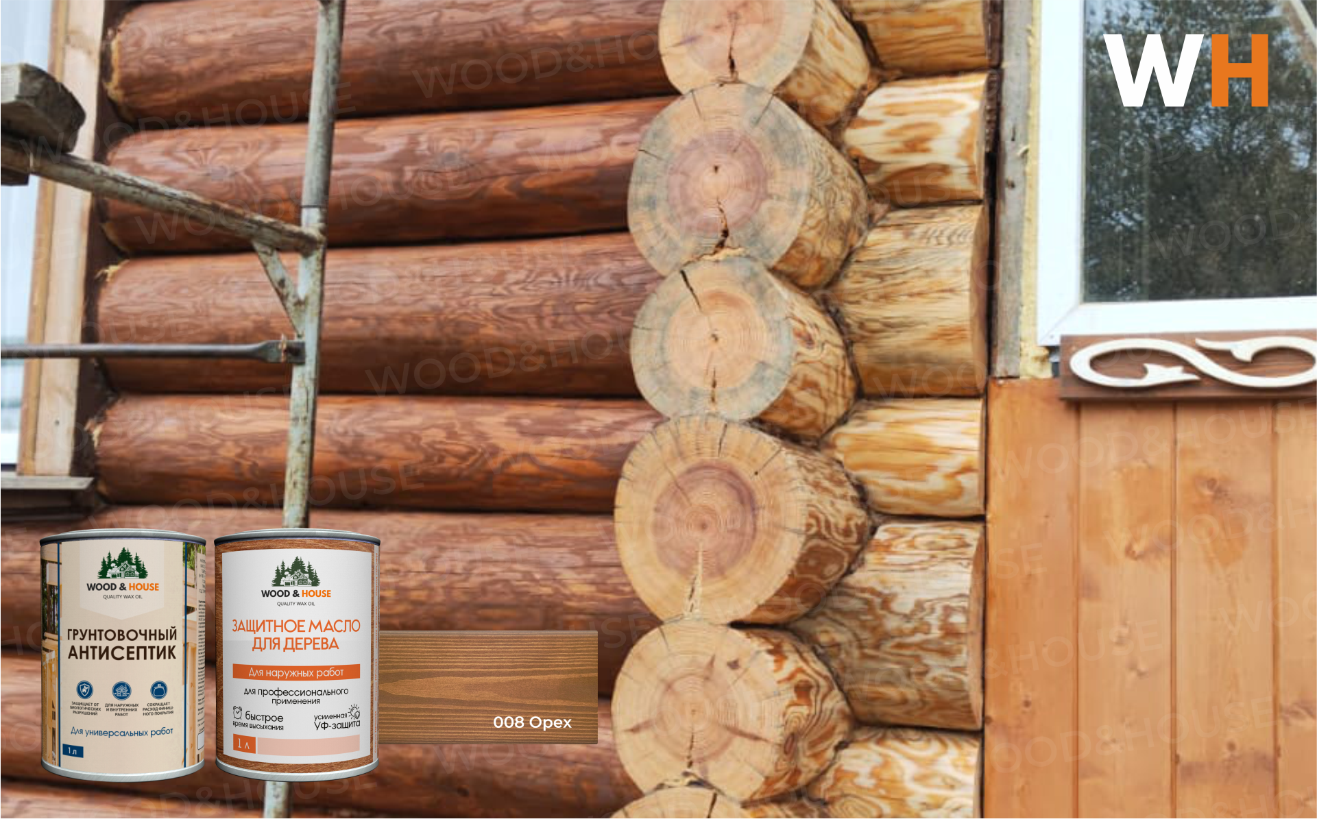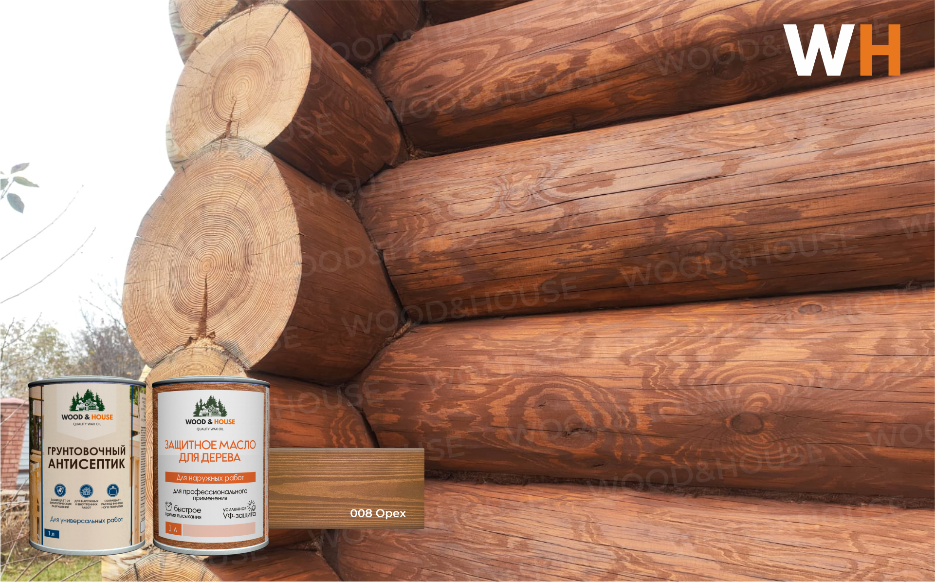 Грунтовочный антисептик в 1 слой + Защитное масло для дерева, цвет Орех