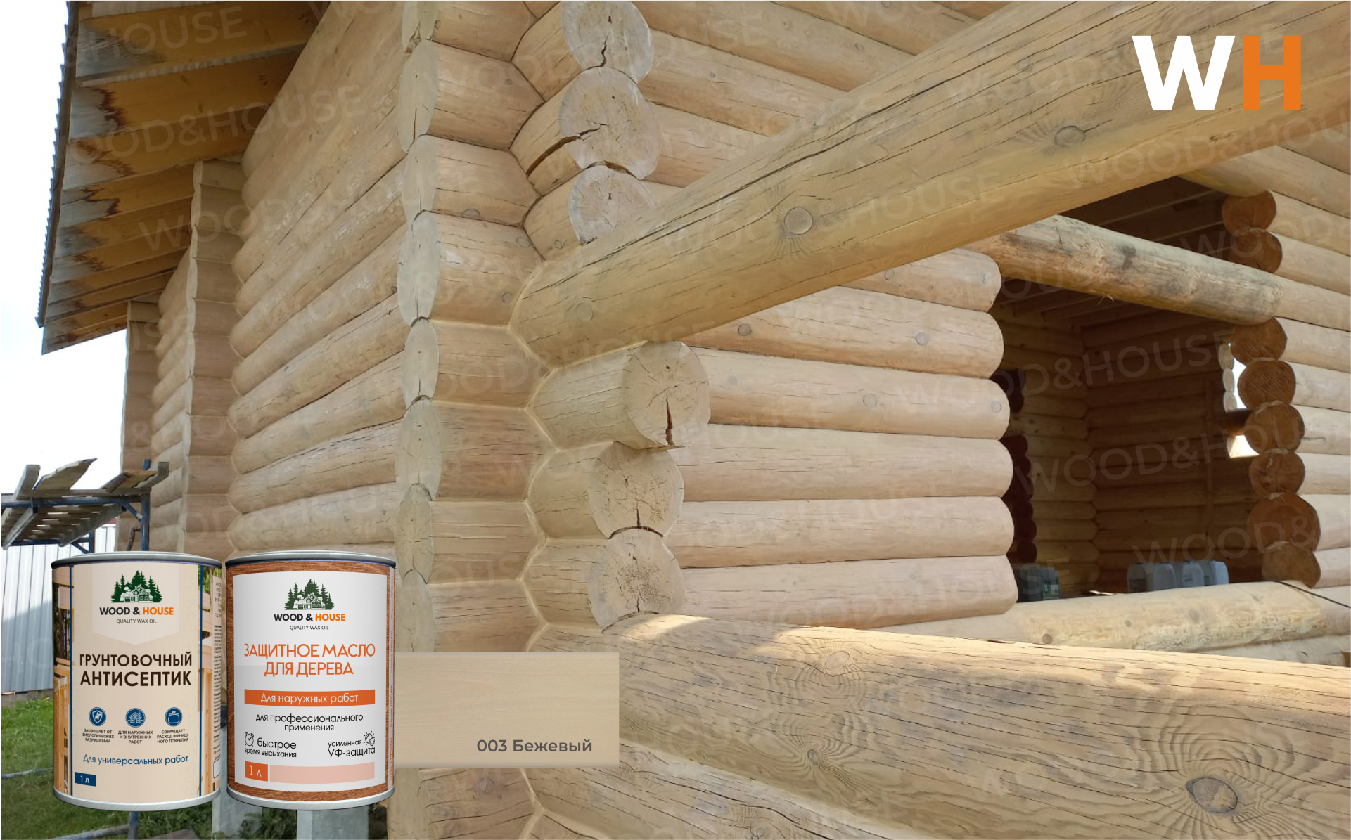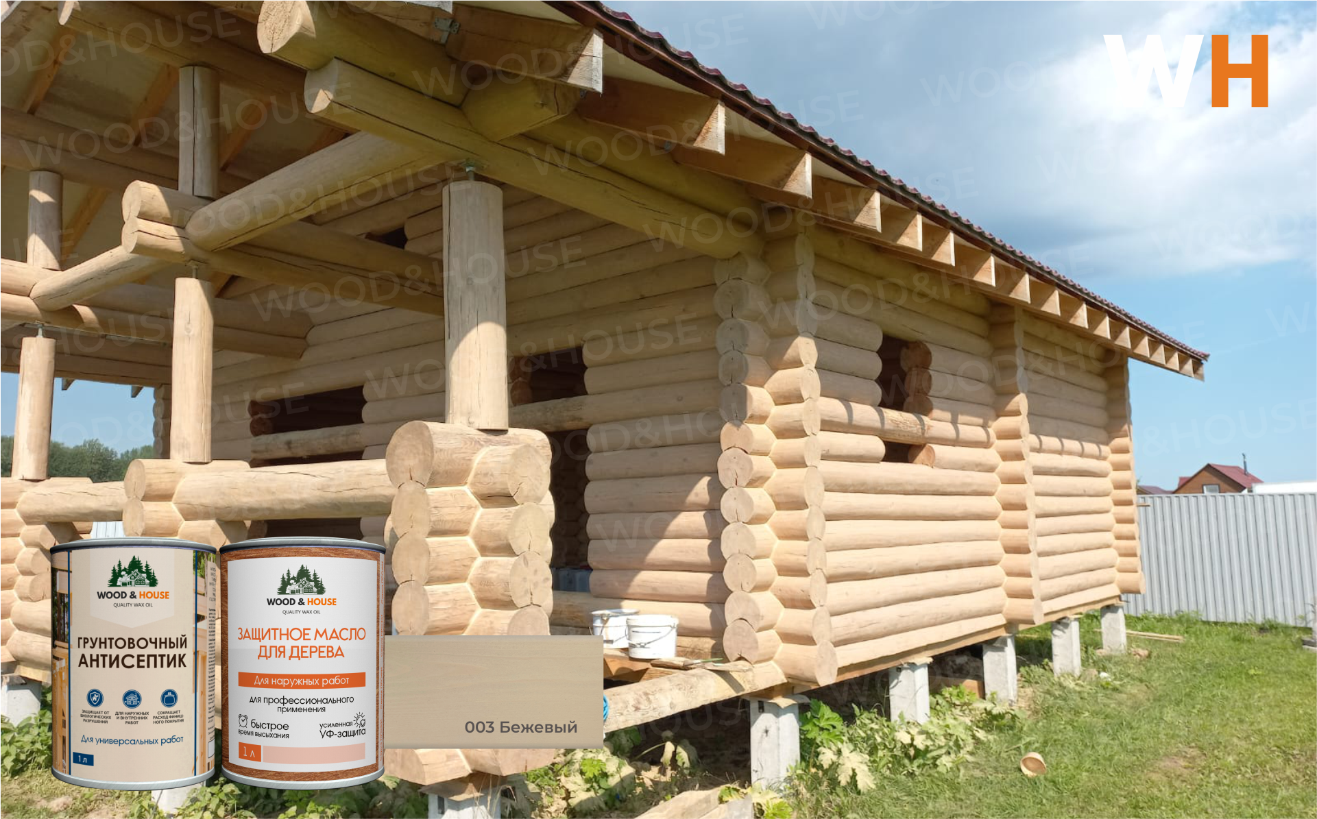 Масло защитное для дерева, цвет Бежевый + покрытие Грунтовочным антисептиком